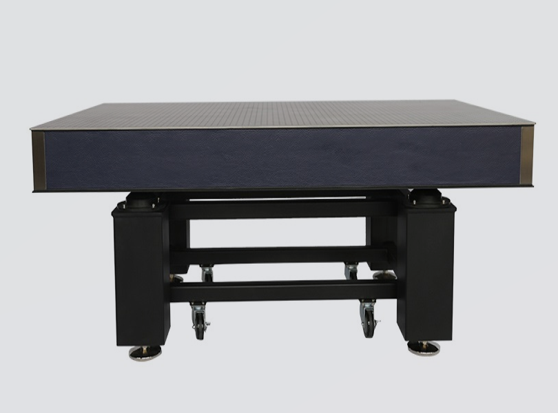 ■台板采用蜂窝芯夹板结构,具有重量轻、高刚度、高阻尼等优点,上面板为1cr17优质高导磁不锈钢,经精密研磨处理,表面平面度高。回旋打磨工艺清除毛边,达到无反射、亚光效果,面板具有M6螺孔,易于固定光学元件。